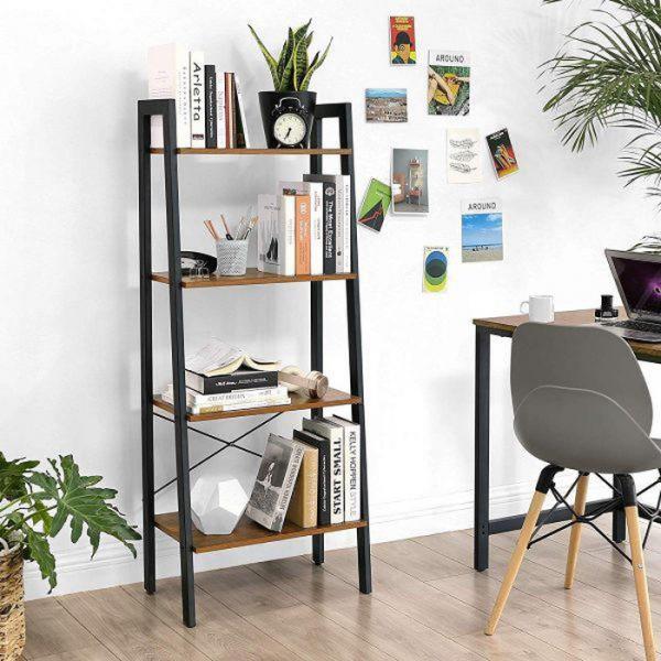 Tận dụng tối đa không gian sàn với kệ thang kiểu công nghiệp nhỏ gọn này.