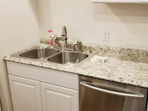 Phòng bếp sau khi sửa nổi bật với tủ bếp màu trắng, mặt bàn bằng đá cẩm thạch và các thiết bị mới. (Ảnh: Business Insider)