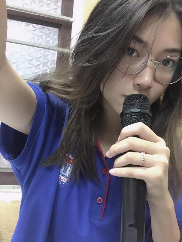 Thần thái "so deep" khi đứng chép phạt, cộng với diện mạo xinh xắn khiến Hạnh Hiền được nhiều người chú ý.