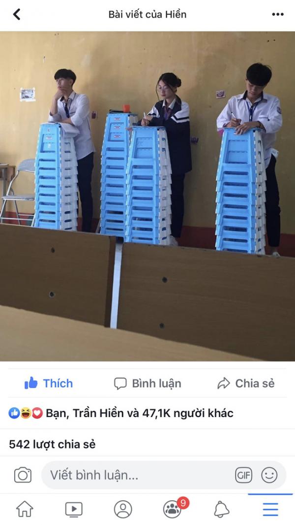 Liên hệ với trần Hạnh Hiền, nữ sinh cho hay: "Hôm qua em và hai bạn nam nữa bị thầy giáo bắt đứng chép bài, mà cả 3 bọn em đều cao trên 1m70 cả nên thầy kêu xuống cuối lớp đứng.