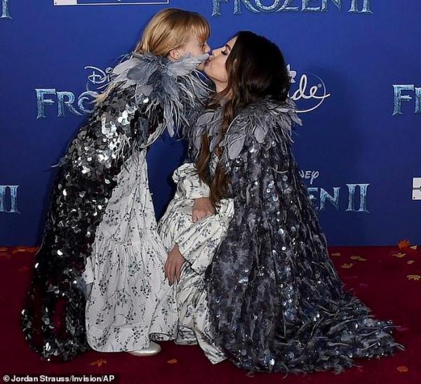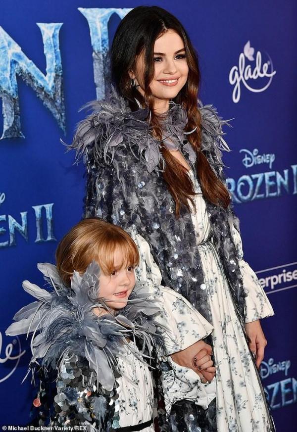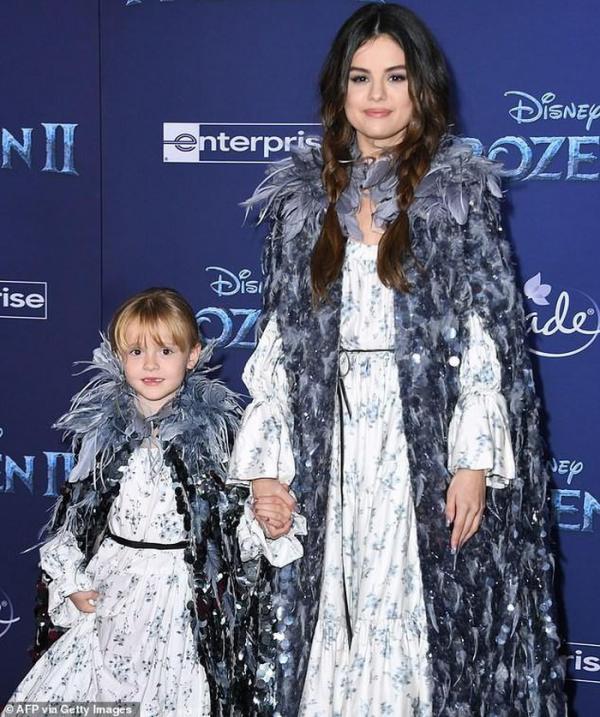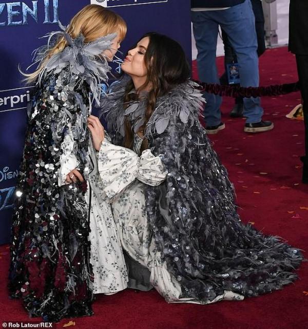 Selena Gomez trang điểm, tết tóc xinh đẹp, âu yếm hôn em gái 6 tuổi trên thảm đỏ buổi ra mắt phim ’Frozen 2’ diễn ra ở Los Angeles ngày 7/11.