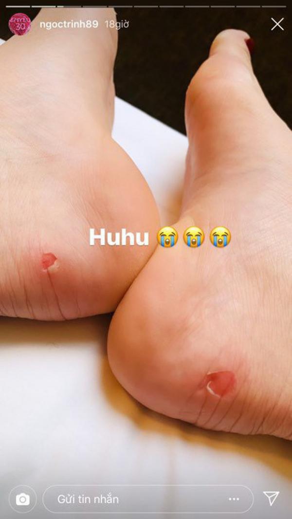 Trước đó, Ngọc trinh cũng từng than khổ khi đi giày cao gót khiến da bị bong tróc, rướm máu.