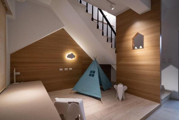 Đôi vợ chồng đã tận dụng không gian dưới cầu thang để mở ra một khu vui chơi trẻ em riêng biệt.