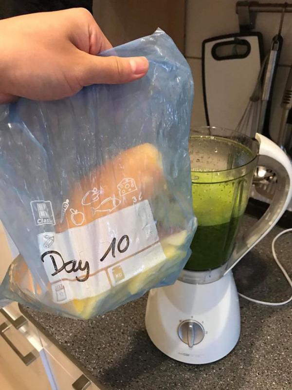 Theo đó, mọi người có thể đi siêu thị chuẩn bị thực đơn cho 6 ngày, sau đó cắt nhỏ rồi bỏ vào túi zip đóng kín lại xong để tủ lạnh ngăn đá. Về phần xay sinh tố detox, hot boy Sài Thành cũng khuyên mọi người nên xay vào buổi sáng, trong trường hợp ai dậy muộn thì cũng có thể xay vào buổi tối hôm trước.
