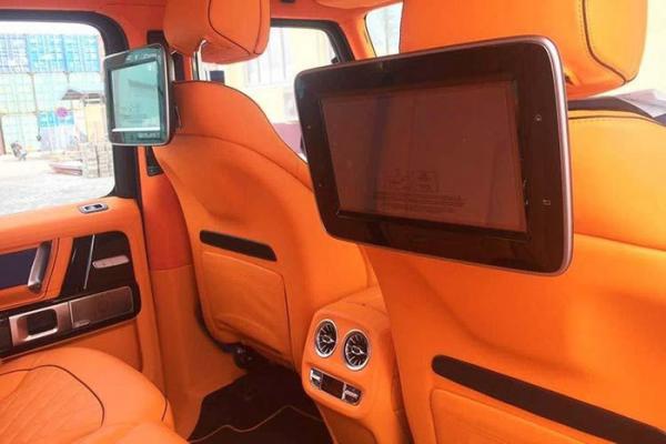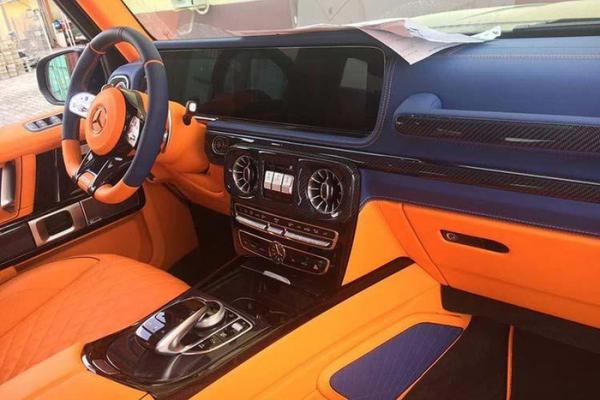 Bên trong nội thất của chiếc Brabus 800 độ từ G63 AMG 2019 được lột xác theo phong cách của thương hiệu thời trang hàng hiệu Hermes. Cụ thể, loại da cao cấp được sử dụng có màu cam làm chủ đạo cực kì nổi bật. Một số chỗ nhấn nhá bằng loại da màu xanh trùng màu ngoại thất. Ngoài ra còn là chất liệu Carbon siêu nhẹ và nhôm cao cấp.