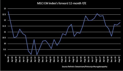 Chỉ số MSCI thị trường mới nổi cũng chỉ ra tỷ số P/E 12 tháng qua, tính đến cuối tháng 11/2019, ở mức 11,8. Còn mức trung bình 10 năm là 10,9. Mức thấp nhất của nó là 8,5 vào tháng 10/2011 và mức cao là 13,09 vào tháng 1/2018. Trung Quốc và Ba Lan chứng kiến P/E giảm mạnh nhất trong thập kỷ qua còn Thái Lan thì ghi nhận P/E tăng mạnh nhất.