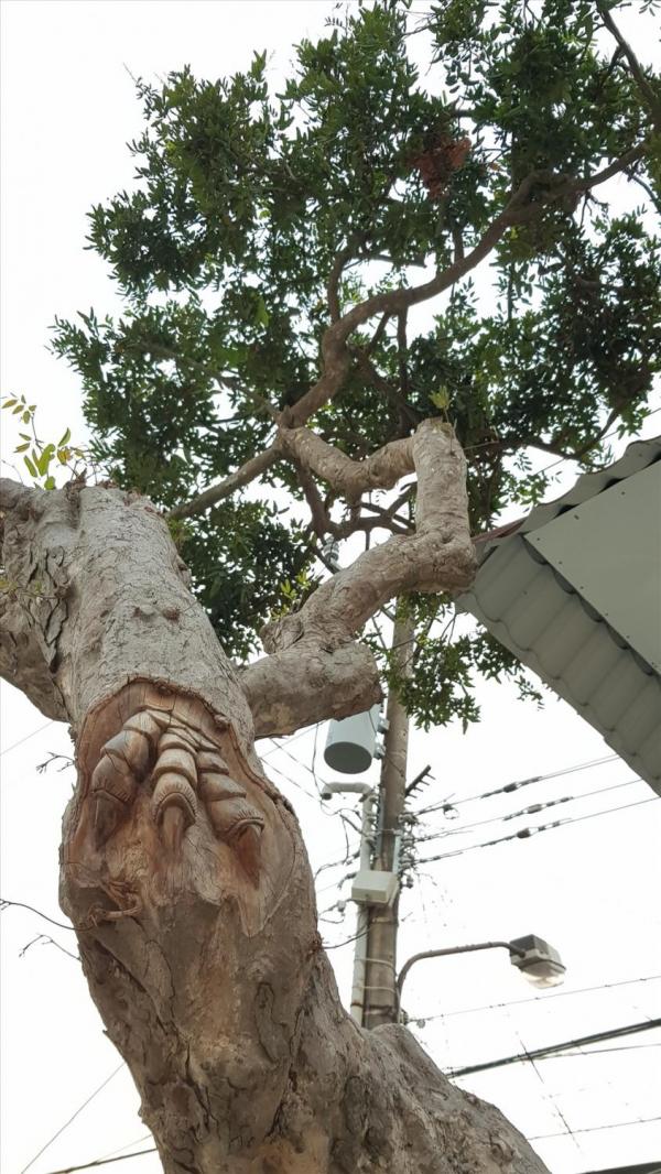 thân cây, gốc cây, các khúc cành nhánh uốn cong của cây đang xanh tươi đó đều được đẽo tạc rất tinh tế, cầu kỳ. Việc "hành hạ" làm chảy máu một cây xanh vô tội trong khu có nhiều khách tham quan này, có thể ai đó sẽ ái ngại nói đó là điều không khuyến khích. Nhưng quả thật, nghệ nhân nào đó đã hết sức sáng tạo.