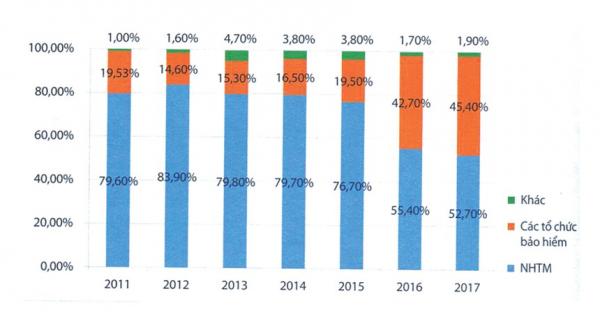 Trước đó, biểu đồ nắm giữ công cụ nợ này từ năm 2011-2017 cho thấy, tỷ trọng sở hữu của các ngân hàng thương mại nhỏ dần, nhường chỗ cho các nhà đầu tư khác tham gia (xem bảng 1).
