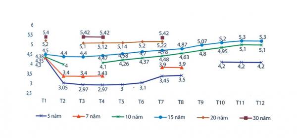 Bảng 2: lãi suất trái phiếu chính phủ theo các kỳ hạn.