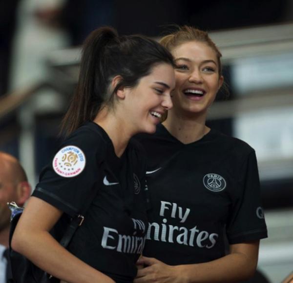 Hai chân dài đình đám Kendall Jenner và Gigi Hadid thì đã tranh thủ quãng thời gian tham dự Tuần lễ thời trang Paris để tới theo dõi PSG thi đấu.