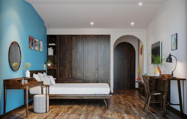 Một phòng ngủ khác có đồ nội thất đơn giản hơn nhưng vẫn mang nét hoài cổ và mộc mạc.
