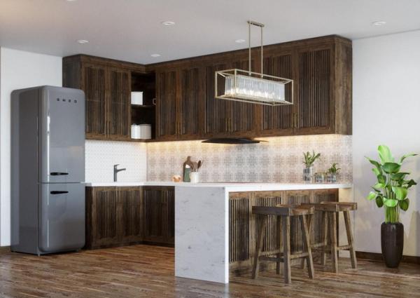 Tủ bếp kiểu xưa có nhiều khe thoáng khí, giữ cho thực phẩm và các vật dụng luôn được khô ráo.