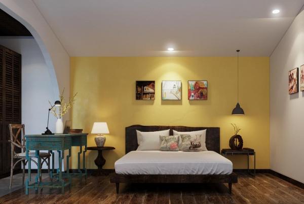 bức tường màu vàng giữ cho không gian không bị quá tối và tù túng.