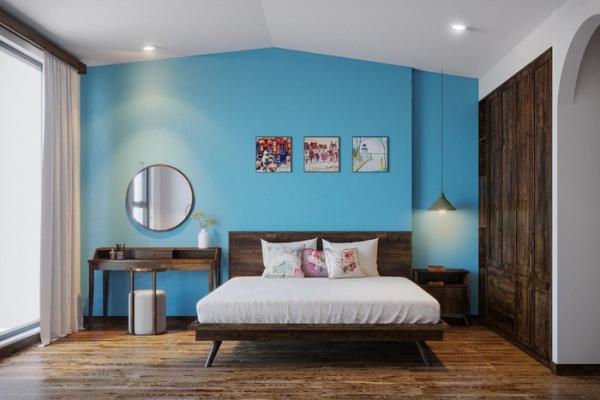 bức tường màu xanh phù hợp với sở thích và phong cách của phòng trẻ em.
