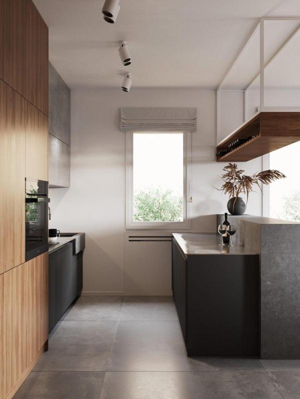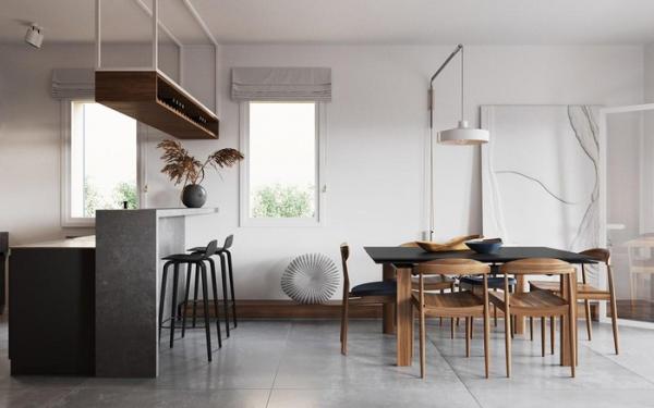Gỗ, kim loại và bê tông…hoàn hảo để diễn tả một căn bếp theo phong cách tối giản nhưng sang trọng.