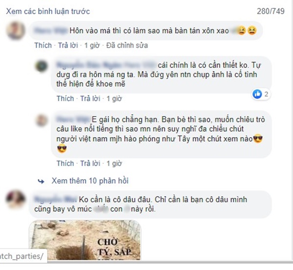 Tuy nhiên, bên cạnh những bình luận mắng nhiếc, phê bình cũng có người cho rằng chỉ là cái hôn xã giao, thân thiện hoặc đến từ người thân trong gia đình. “Hôn vào má thì có làm sao mà bàn tán xôn xao”, một tài khoản bình luận.