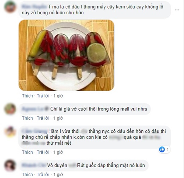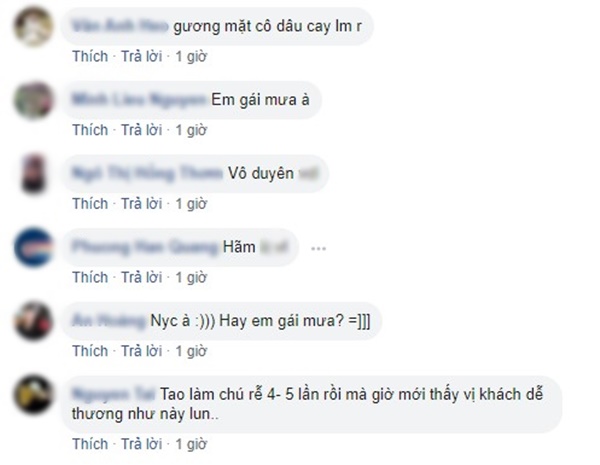 Một tài khoản tên M.H bình luận: “Tôi mà là cô dâu, tôi đã tặng mấy cây kem siêu cay khổng lồ chứ hôn gì” để thể hiện sự bất mãn. Những bình luận như “Vô duyên”, “Hãm”, “Em gái mưa à hay người yêu cũ” xuất hiện khá nhiều dưới bài đăng.