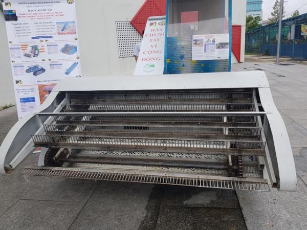 Nhóm sinh viên gồm: Nguyễn Văn Thịnh, Nguyễn Thành Tâm, Nguyễn Ngọc Huynh, Nguyễn Quý Phi đến từ Khoa Cơ khí Giao thông, trường Đại học Bách khoa, Đại học Đà Nẵng, đã nghiên cứu ra phương tiện thu gom rác bãi biển.