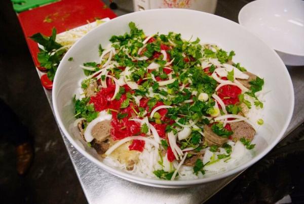 Mỗi tô gồm 1,36 kg thịt bò và bánh phở và 1,3 lít nước dùng. Đặc biệt là nước dùng phở được nấu bằng xương bò suốt 14h.