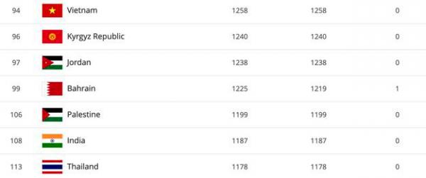 Bảng xếp hạng bóng đá nam mới nhất được FIFA công bố, ĐT Việt Nam xếp hạng 94 thế giới và 14 của châu Á.