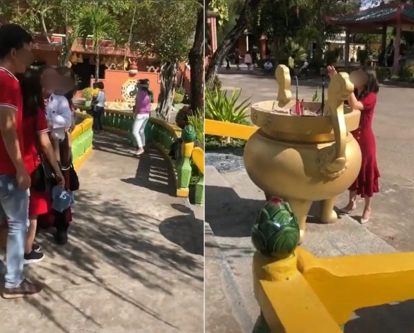 Đoạn clip cô gái diện váy đỏ, dựng chân máy trong lư hương để chụp ảnh khiến dân tình phẫn nộ