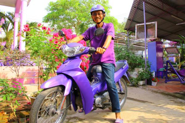 Đến chiếc xe di chuyển đi lại ông trần Văn Tiếp cũng chọn màu tím