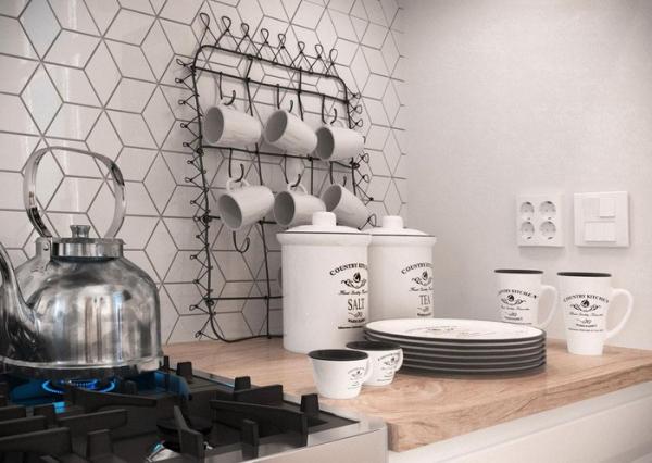 Cốc bằng gốm được treo trên một chiếc giá có hình thù dễ thương.
