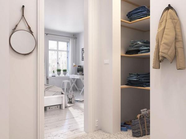Tủ quần áo âm tường đặt gọn gàng phía trong phòng ngủ.