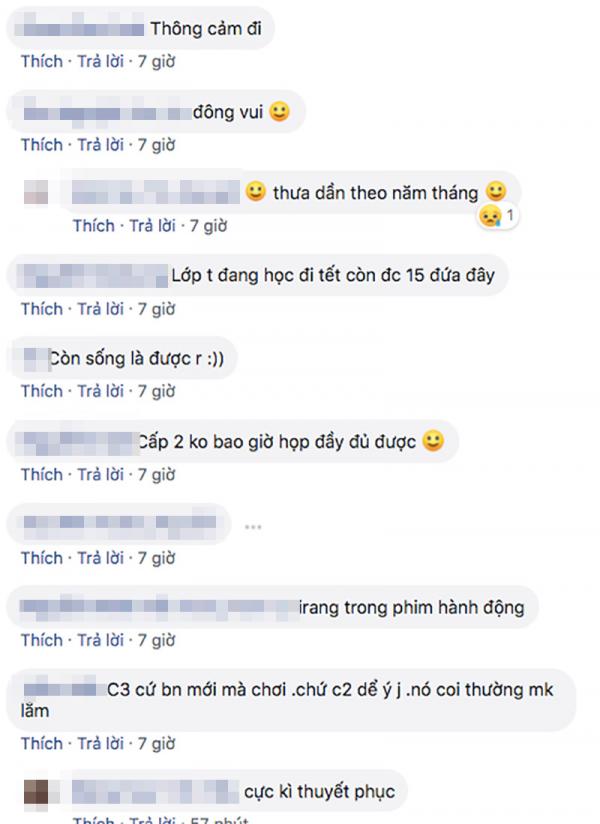 Bên dưới bài đăng, nhiều tài khoản gửi lời thông cảm và cho rằng ’chủ thớt’ chưa chọn đúng ngày để cả lớp đều có thể tham gia. Số khác cũng liên tục than thở rằng họp lớp của họ chỉ mãi là lời hứa từ lúc tốt nghiệp ra trường…