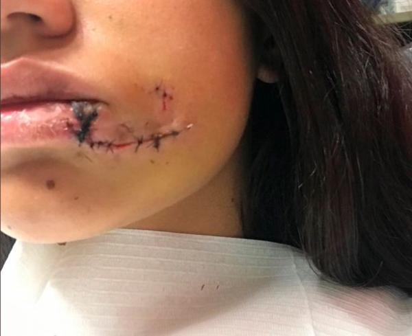 Lara Sanson đến từ Argentina, mới đây đã phải nhập viện khâu 40 mũi trên gương mặt sau khi bị chú chó giống chó chăn cừu Đức (German Shepherd) tấn công trong lúc cô nàng cố gắng chụp hình kỷ niệm với con vật này.