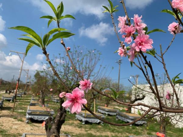 Trong đó không thể thiếu sắc đào là loài hoa đặc trưng cho ngày Tết. Đặc biệt những gốc đào cảnh cổ thụ được nhiều người ưa chuộng, nhưng đây là một “món hàng sang” nên giá cũng khá cao tùy vào kích thước, tuổi đời, tạo thế, sắc hoa…