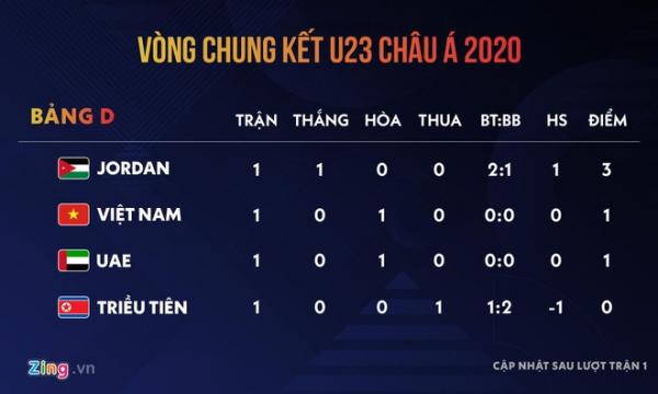U23 Jordan đã có khởi đầu tốt khi thắng 2-1 trước U23 CHDCND Triều Tiên. Ba điểm là đủ để họ tạo khoảng cách 2 điểm trước Việt Nam và UAE vì hai đối thủ cầm chân nhau trong trận hòa 0-0 hôm 10/1.