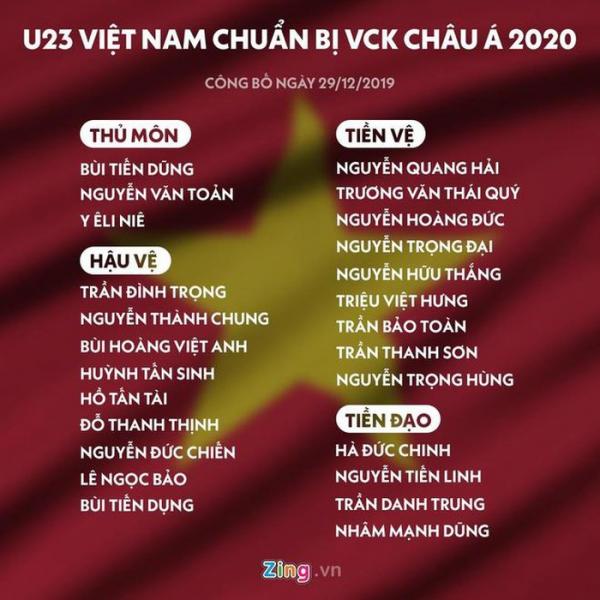 Ở lần chốt danh sách 25 cầu thủ đầu tiên cách đây ít lâu, huấn luyện viên Park Hang-seo đã gạch tên Văn Tới, Thiện Đức và Quang Nho. Do số lượng cầu thủ cho phép ở giải đấu sắp tới là 23 người với mỗi đội, huấn luyện viên Park Hang-seo sẽ tiếp tục phải nói lời chia tay với 2 học trò.