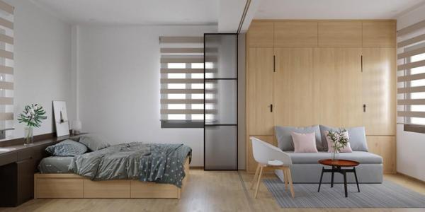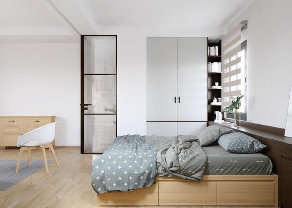 Phòng ngủ chính có thêm bộ ghế sofa đặt ở cạnh cửa sổ, để vợ chồng gia chủ có thể đọc sách hoặc uống trà.