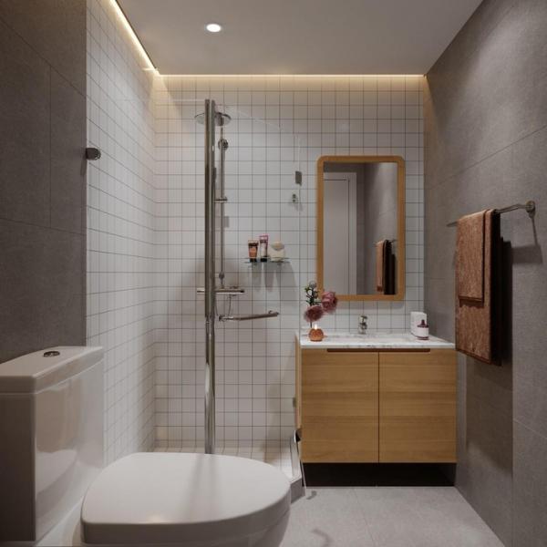 Phòng tắm ướt và phòng tắm khô mang phong cách hiện đại.
