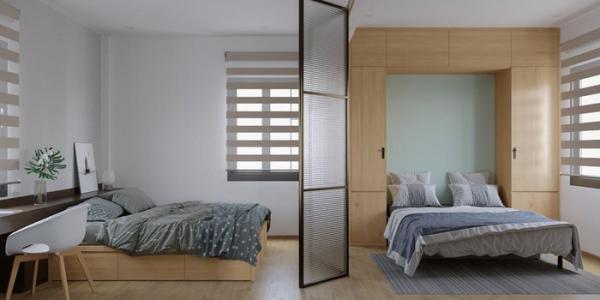 Phòng trẻ em gồm hai chiếc giường ngủ, dành cho 2 đứa con của gia chủ.