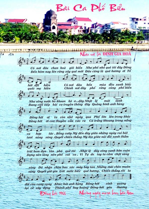 Còn nhạc sĩ Đinh Gia Hòa thì nói về bài hát này vẫn là những lời “gan ruột: “Có những buổi chiều ngồi ở lưng đồi nhìn hoàng hôn tím ngắt phía bìa rừng, nhớ về phố biển mà lòng bật lên những tứ thơ, ý nhạc: “Nhớ chi mà cháy gan, cháy lòng. Ước chi cho tôi được vẫy vùng trong nước sông Nhật Lệ”…