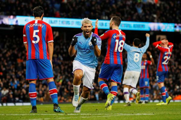 Cú đúp bàn thắng trong vòng 5 phút cuối trận của Sergio Aguero không đủ mang về trọn vẹn 3 điểm cho chủ nhà Man City trước áp lực khủng khiếp của Crystal Palace.