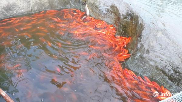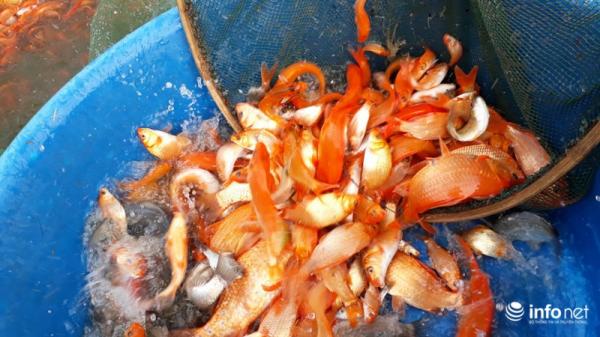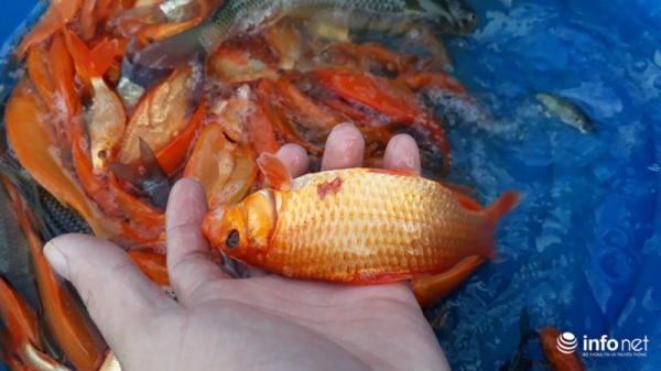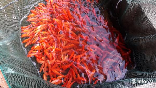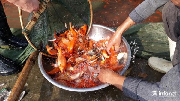 Để có cá chép đỏ phục vụ cho ngày ông Táo, từ cuối tháng 7 Âm lịch người dân bắt đầu thả giống nuôi. Sau hơn 4 tháng nuôi khi thu hoạch cá có kích thước bằng 2-3 ngón tay là phù hợp.