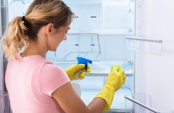 Đối với phần không thể tháo rời bên trong tủ lạnh, cũng như phần khung viền, chúng ta dùng khăn/giẻ khô lau sạch một lần bên trong tủ lạnh. Tiếp theo, dùng dung dịch giấm trắng cho vào bình xịt hoặc làm ướt khăn, lau sạch tổng thể bên trong và ngoài tủ. Cuối cùng, dùng khăn ẩm với nước lau sạch lại một lần nữa.