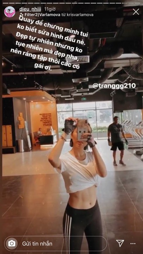 Sau đó Diệu Nhi còn thách thức với người kia nữa: "Có ngon thì thì chị đi tập Gym để em coi thể lực ai ngon hơn nè. buồn chị lắm mai em đi tập 5 tiếng trong phòng Gym cho đỡ buồn chị nè."
