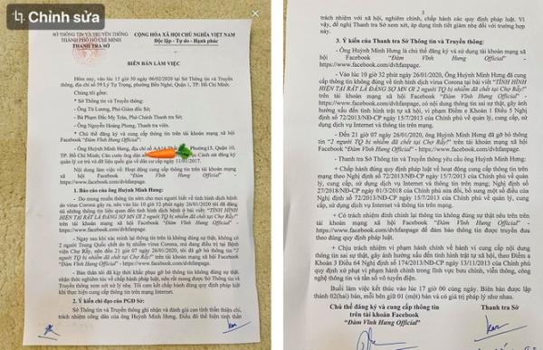 Trong đó, anh chia sẻ hai bức ảnh chụp lại biên bản làm việc với Sở Thông tin và Truyền thông TP.HCM vào 15h chiều ngày 6/2 vừa qua, kèm theo đó là “tâm thư” khá dài để xin lỗi về hành vi sai trái của mình.
