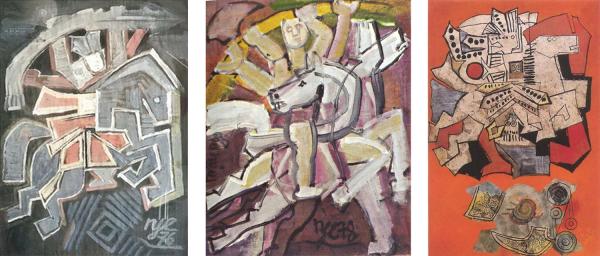 Một số tác phẩm trong loạt tranh chủ đề Gióng của họa sĩ Nguyễn Tư Nghiêm sáng tác các năm 1976, 1978, 1982...