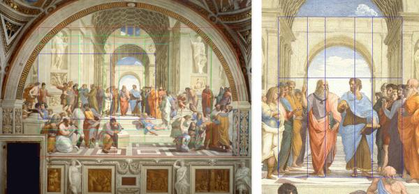 Các lớp tỷ lệ vàng trong tác phẩm The School of Athens của Rafael. Ảnh: Golden Number.