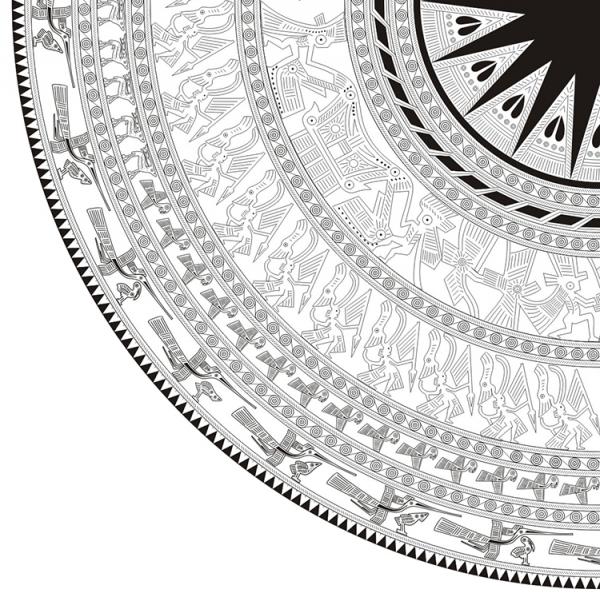 Những nét vẽ đều được lắp dựng từ hình kỷ hà (các hình, nét cơ bản thẳng, cong, vuông, tròn...) gãy gọn, khúc triết. Những bước chân ngựa, y phục của nhân vật được khắc họa từ những mô típ tiêu biểu trên trống đồng Đông Sơn gồm vòng tròn tiếp tuyến, hình răng cưa, chữ S gấp khúc.