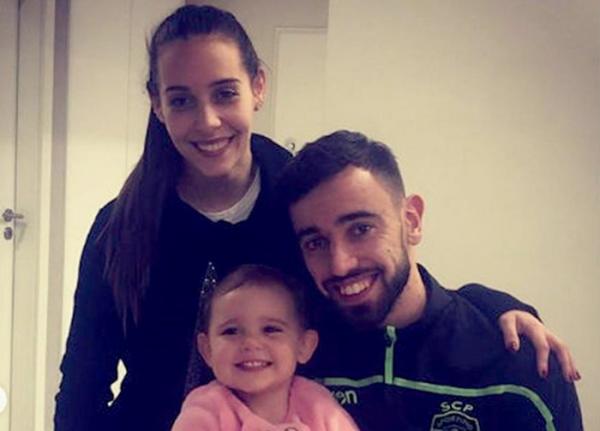 Vợ chồng Bruno Fernandes và con gái