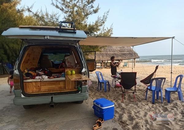 Ảnh 7. Sau khi độ xong, chiếc Toyota VAN 1984 trở thành phương tiện du lịch lý tưởng của gia đình anh Phạm Đức Tín.
