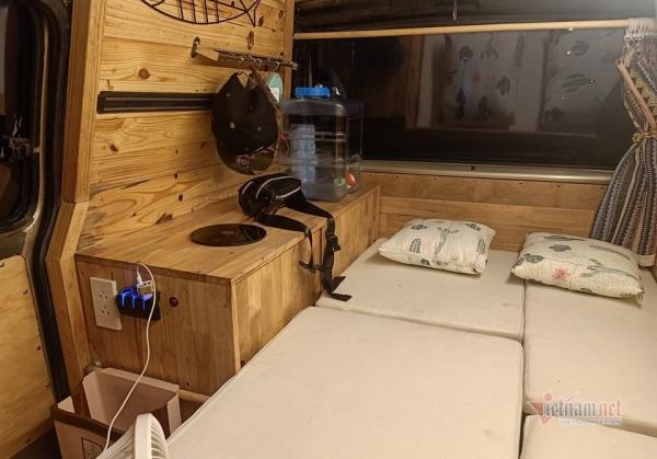 Phần nội thất của xe được thiết kế lại, mở ra một khoảng không gian rộng rãi với gường ngủ, hộc tủ được thiết kế kiểu mô-đun, có thể tháo lắp dễ dàng. Phía trên được kê những chiếc đệm ấm áp, để nằm nghỉ ngơi cho 2 người lớn và 1 trẻ nhỏ.