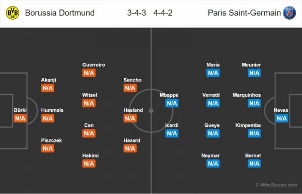 Đội hình dự kiến của Dortmund và PSG (Ảnh: Whoscored)