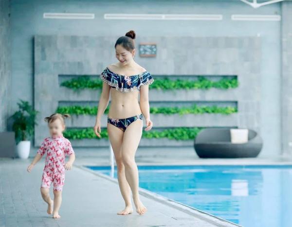 Lan Phương cho con gái đi bơi để tăng sức đề kháng
